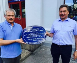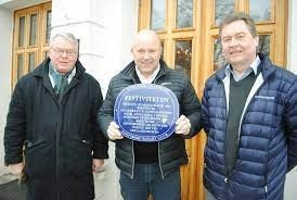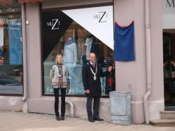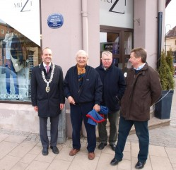 Sarpsborg kommune ønsket at vi avduket det første skiltet 6. april 2013, som var dagen som markerte at det var 1000 dager til jubileumsfesten i 2016 skulle starte. Skiltet ble montert på bygningen Torvet 5 og avduket av ordføreren.