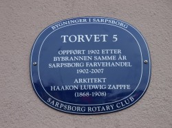 Følgende bygninger i Sarpsborg har hittil blitt utsmykket med Blå skilt: